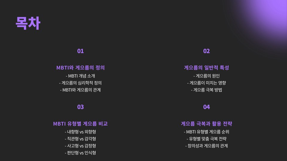 MBTI는 사람의 성격을 16가지 유형으로 나누며, 각 유형은 고유의 특징과 행동 양식을 가지고 있습니다. 게으름이라는 개념은 단순히 일을 하지 않는 상태를 넘어, 스스로의 동기를 찾지 못하고 방황하는 상황을 의미할 수 있습니다. 예를 들어, INFP 유형은 감정적이고 내향적인 성향으로 인해 자신이 해야 할 일을 계속 생각만 하다가 결국 실행하지 못하는 경우가 많습니다.