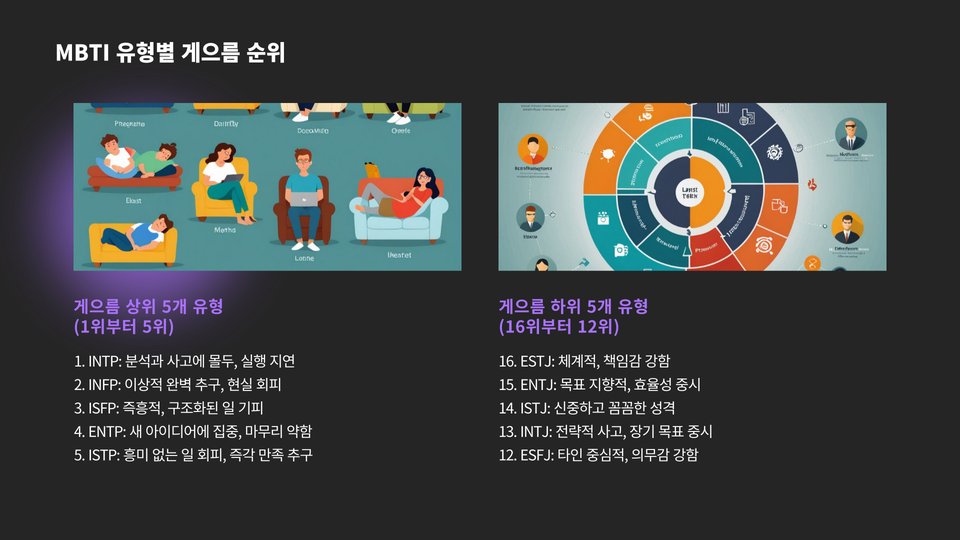 - MBTI 성격 유형은 게으름에 큰 영향을 미친다.
