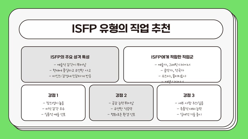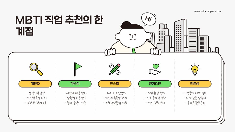 - MBTI를 통해 자신에게 맞는 직업을 찾는 것이 중요합니다.