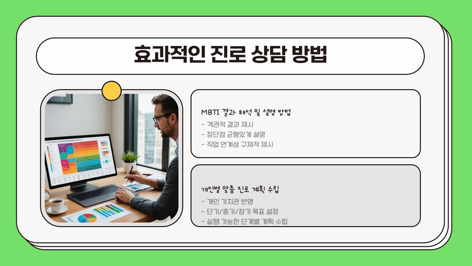 MBTI 직업 추천을 통해 성격 유형에 따른 적합한 직업을 찾는 것은 개인의 직업 만족도를 높이고, 더 나아가 궁극적인 삶의 질 향상에도 기여할 수 있습니다. 전문가들은 정서적 안정성, 업무 환경 선호도, 직무 특성, 성장 가능성을 다각도로 평가하여 개인에게 최적의 직업을 추천하며, 이는 직업 선택에 큰 도움을 줍니다. 따라서 MBTI를 활용한 직업 추천은 단순한 선택 방식이 아닌, 보다 깊이 있는 자기 탐색의 기회를 제공합니다.