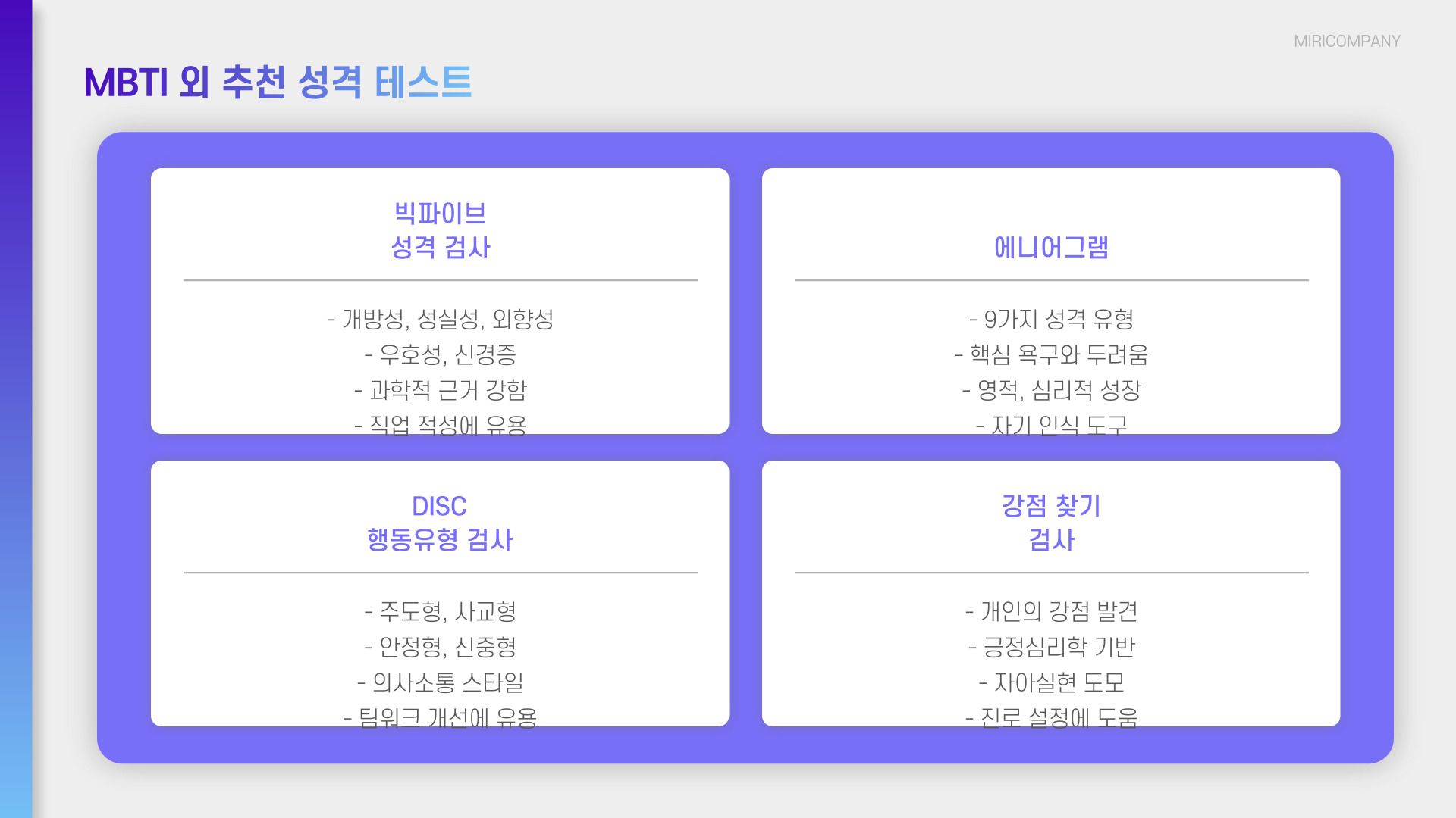 - 정기적으로 MBTI 테스트를 실시하라.