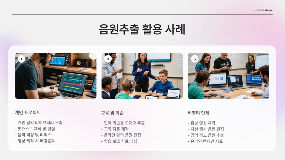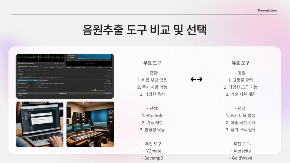 - 모바일 앱 활용: 스마트폰에서 쉽게 음원을 추출할 수 있는 애플리케이션.