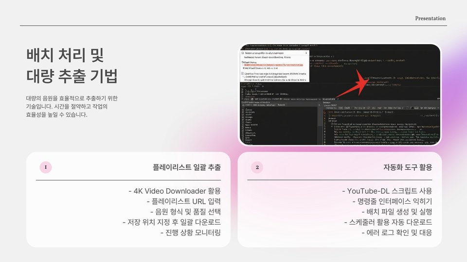 음원추출의 가장 큰 장점은 다양한 음악을 쉽게 얻을 수 있다는 점입니다. 유튜브에는 최신 곡부터 클래식 음악까지 다양한 장르의 음원이 존재하여, 원하는 음악을 찾아 활용할 수 있습니다. 또한, 개인적인 프로젝트나 영상 제작 시 배경 음악으로 활용할 수 있어 창의적인 작업에 도움을 줍니다.