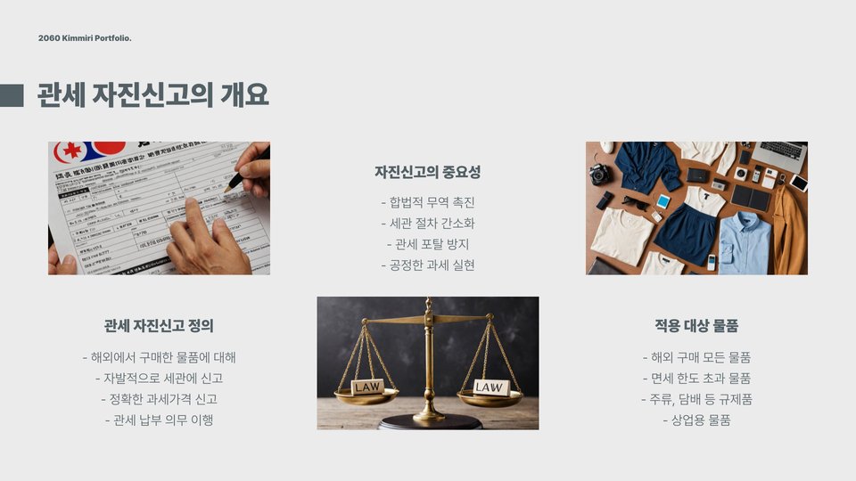 일본에서 관세 자진신고는 해외에서 물품을 구입하거나 반입할 때, 자발적으로 세금을 신고하는 과정입니다. 이는 일본 세관에서 요구하는 신고 절차로, 소비자가 구매한 물품의 가치를 정확하게 보고해야 합니다. 관세 자진신고는 법적으로 요구되는 절차이며, 이를 통해 불이익을 방지할 수 있습니다. 일본에서는 특정 금액 이상의 물품을 반입할 경우 반드시 신고해야 하며, 신고를 하지 않을 경우 벌금이나 세금의 추가 부과를 받을 수 있습니다.