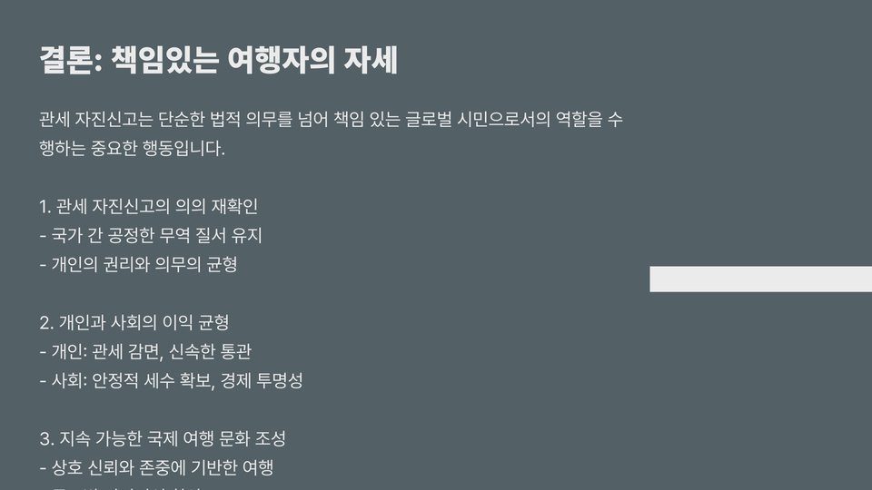 일본 관세 자진신고는 단순한 의무를 넘어서, 개인 및 기업에 많은 혜택을 제공하는 중요한 제도입니다. 자진신고의 과정을 잘 이해하고 준비하신다면, 일본의 법을 준수하면서도 여러 가지 이점을 누릴 수 있습니다. 일본을 방문하거나 거래하는 분들에게 이 가이드가 유용한 도움이 되길 바랍니다.