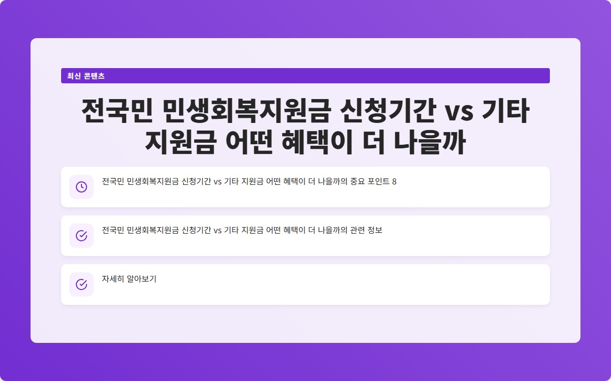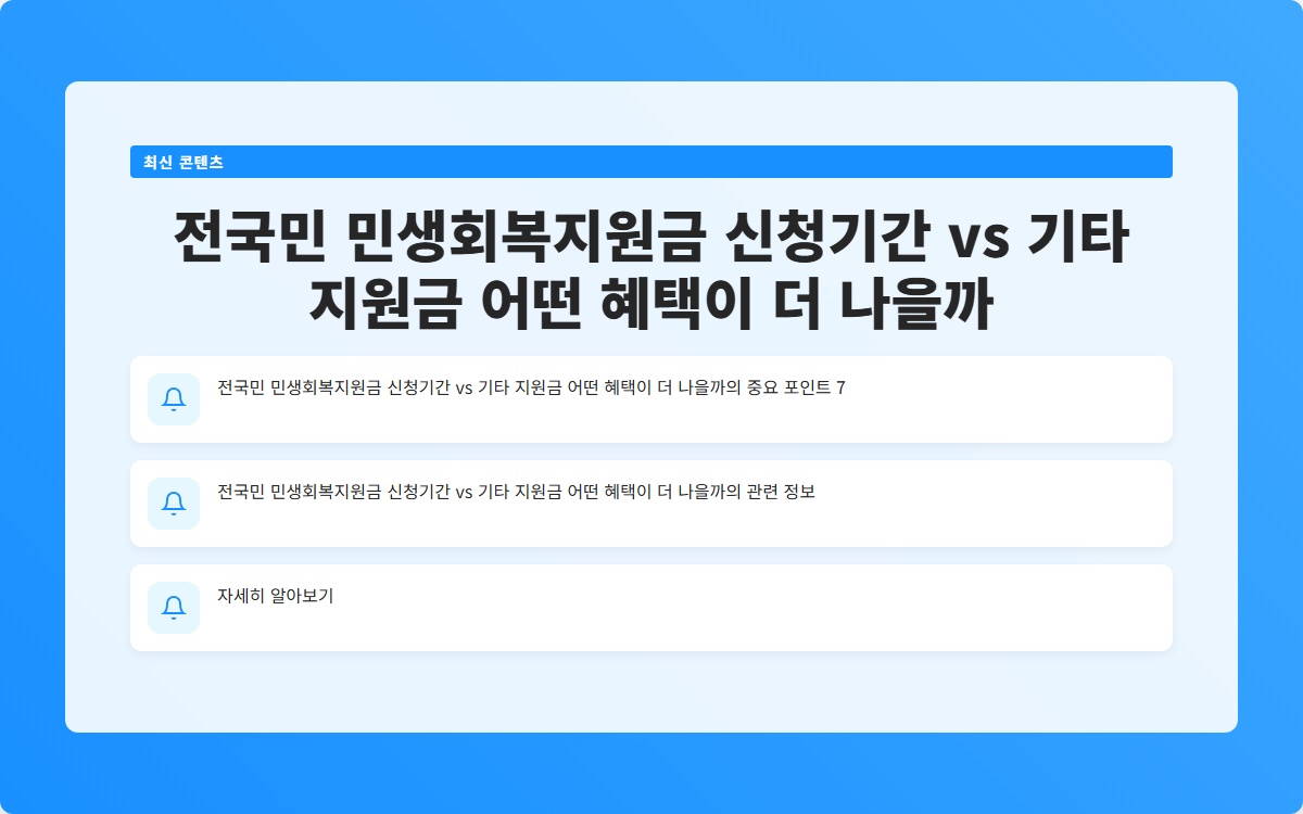 이 글을 통해 민생회복지원금의 신청 기간과 기타 지원금과의 비교를 통해 어떤 혜택이 더 나은지 알아보겠습니다.