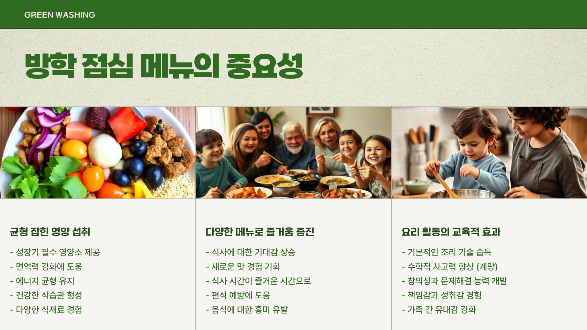 - 아이들과 함께 요리하며 교육하는 것이 중요합니다.