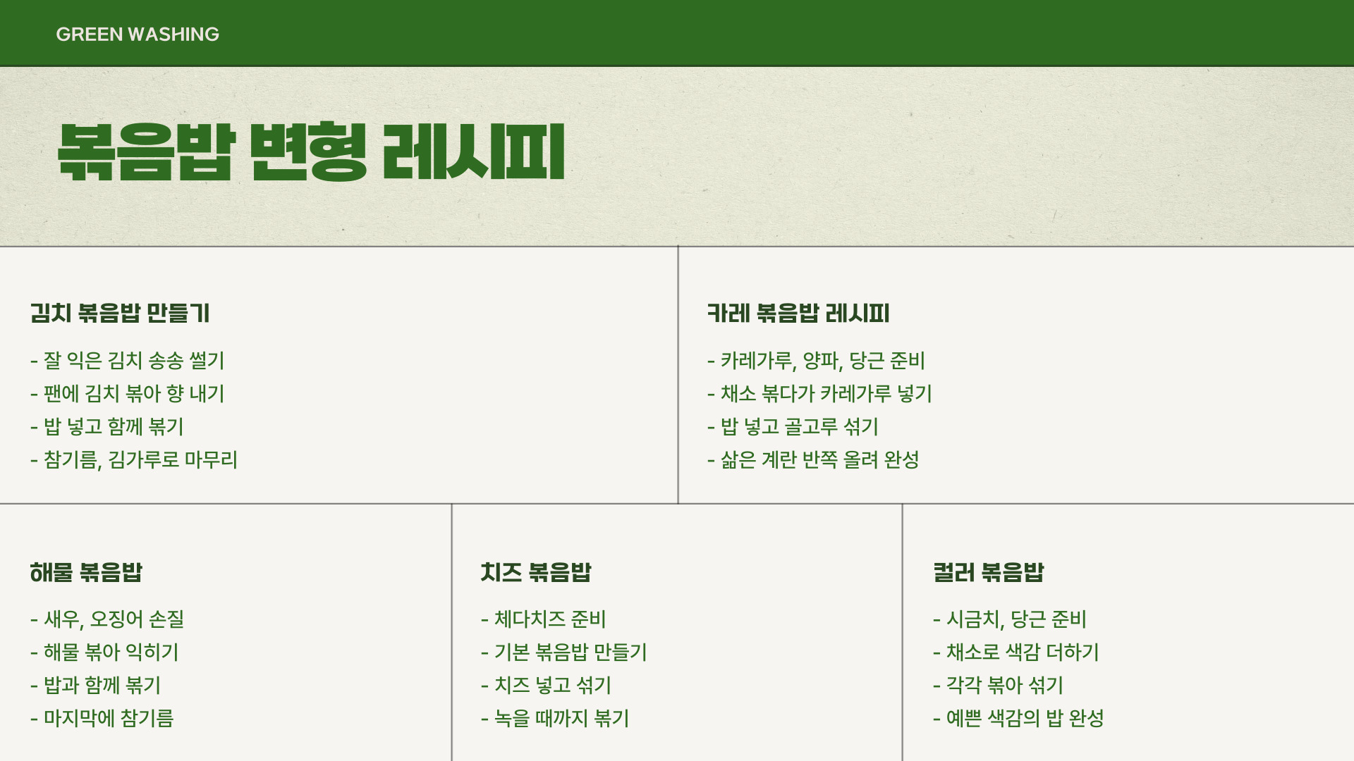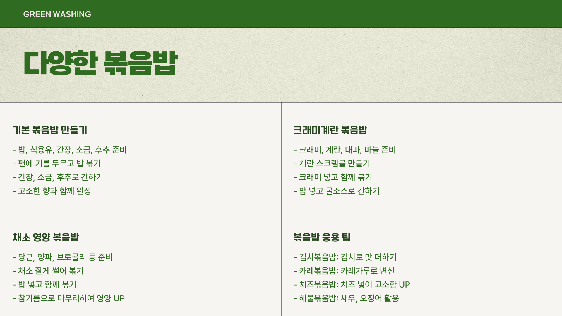 - 볶음밥: 남은 재료 활용
