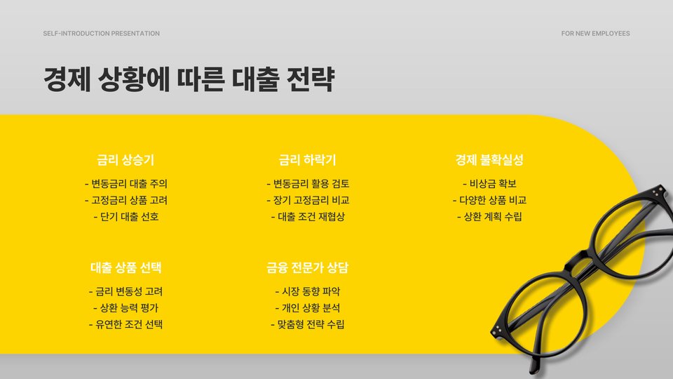 - 각 금융기관의 금리를 비교하여 최적의 상품을 선택해야 한다.