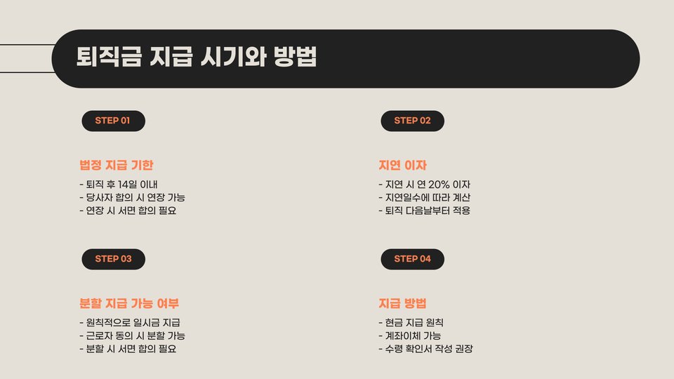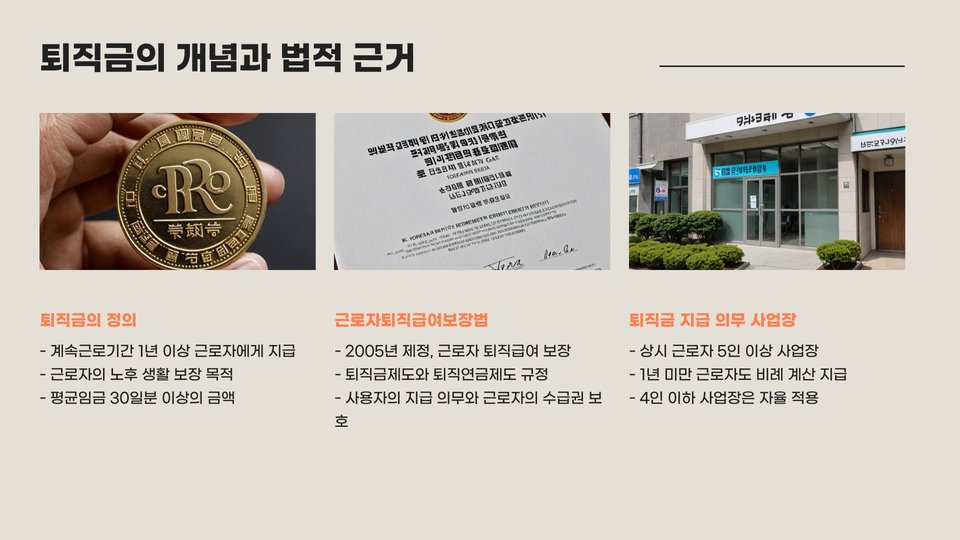 | 법적 기준 | 근로기준법에 의한 퇴직금 규정 확인 |