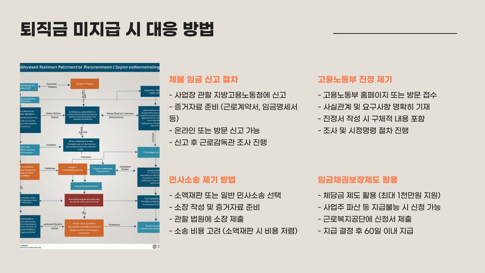 | 퇴직금 미지급 시 대처 방법 | 관할 노동청에 신고 |