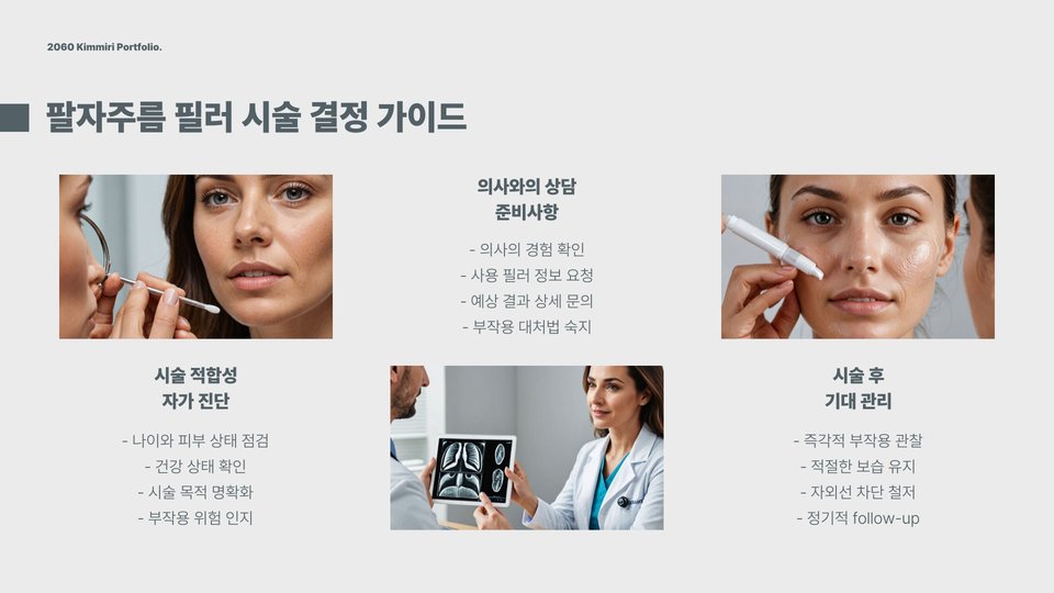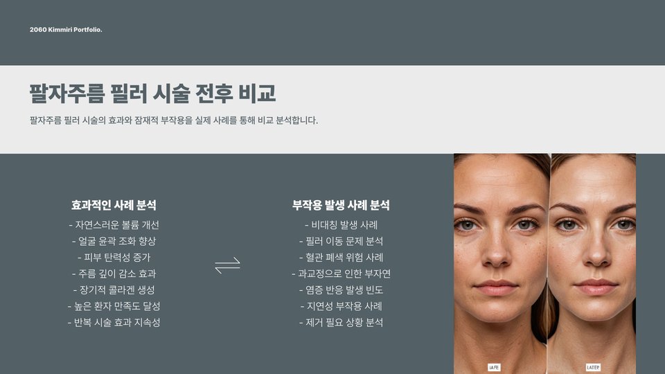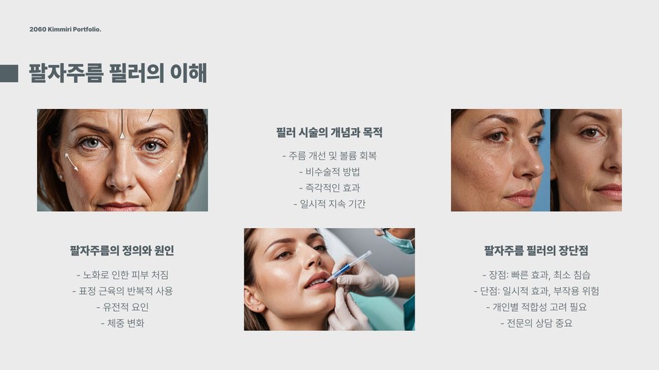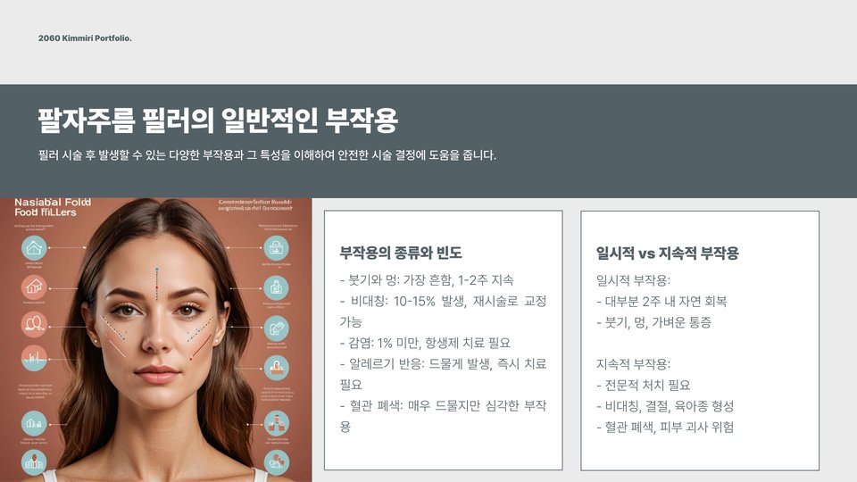 팔자주름은 나이가 들면서 자연스럽게 생기는 피부의 주름으로, 많은 사람들에게 미용적인 고민을 안겨줍니다. 이러한 주름을 없애기 위한 방법 중 하나가 바로 필러입니다. 필러는 피부에 주입하여 볼륨을 증가시키고 주름을 완화하는 데 도움을 주지만, 이 과정에서 여러 가지 부작용이 발생할 수 있습니다. 이 글에서는 팔자주름 필러의 부작용을 극복하는 방법과 효과적인 전문가 추천에 대해 알아보겠습니다.