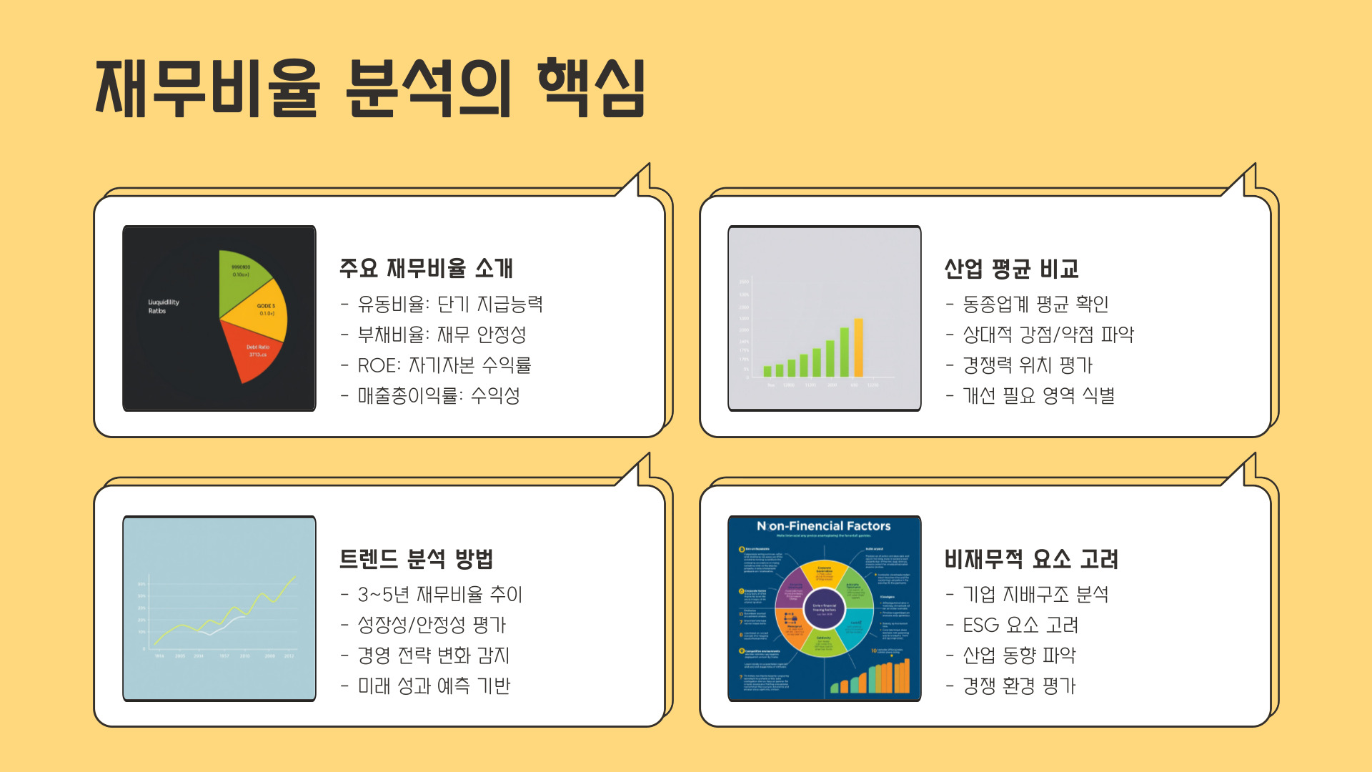 - ROE, 부채비율, 매출총이익률 등 주요 지표에 주목할 필요가 있습니다.